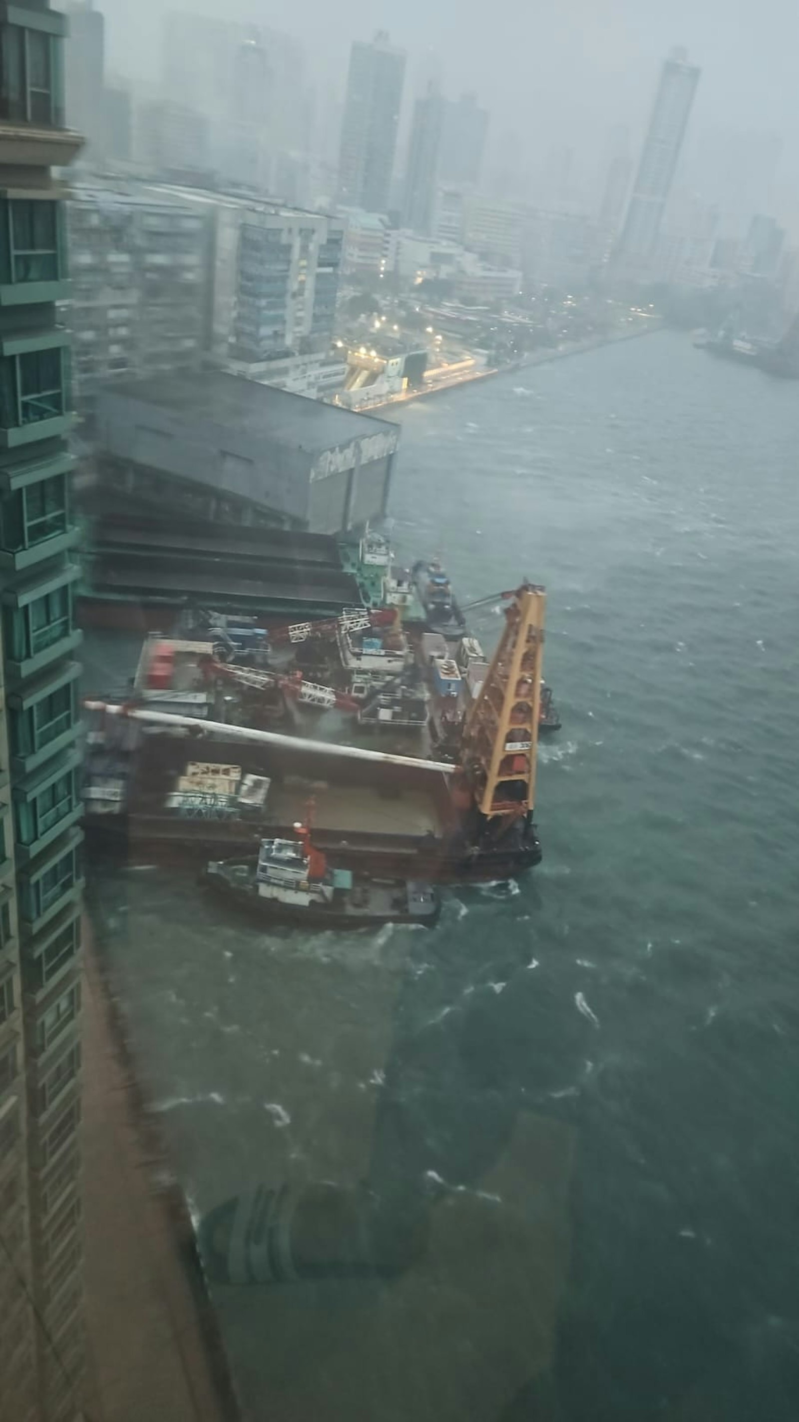 香港警方清晨5时11分接到海逸豪园居民报案,称对开避风塘有6艘船只受强风吹袭互相碰撞,其中也包括撞上海岸边栏杆的趸船。事件无人员伤亡或失踪报告,岸边一列的栏杆撞毁。
